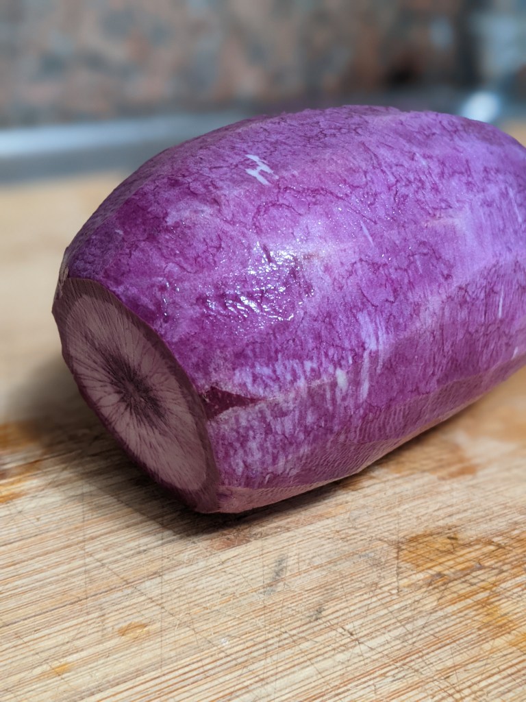 Usually, we would find white daikon in the grocery stores, but there are actually many other skin colors such as red, pink, purple, and black. I have tried white daikon many times at the restaurants and making it at home, but rarely eat purple so I gave it a try. Also, the color captured my attention.