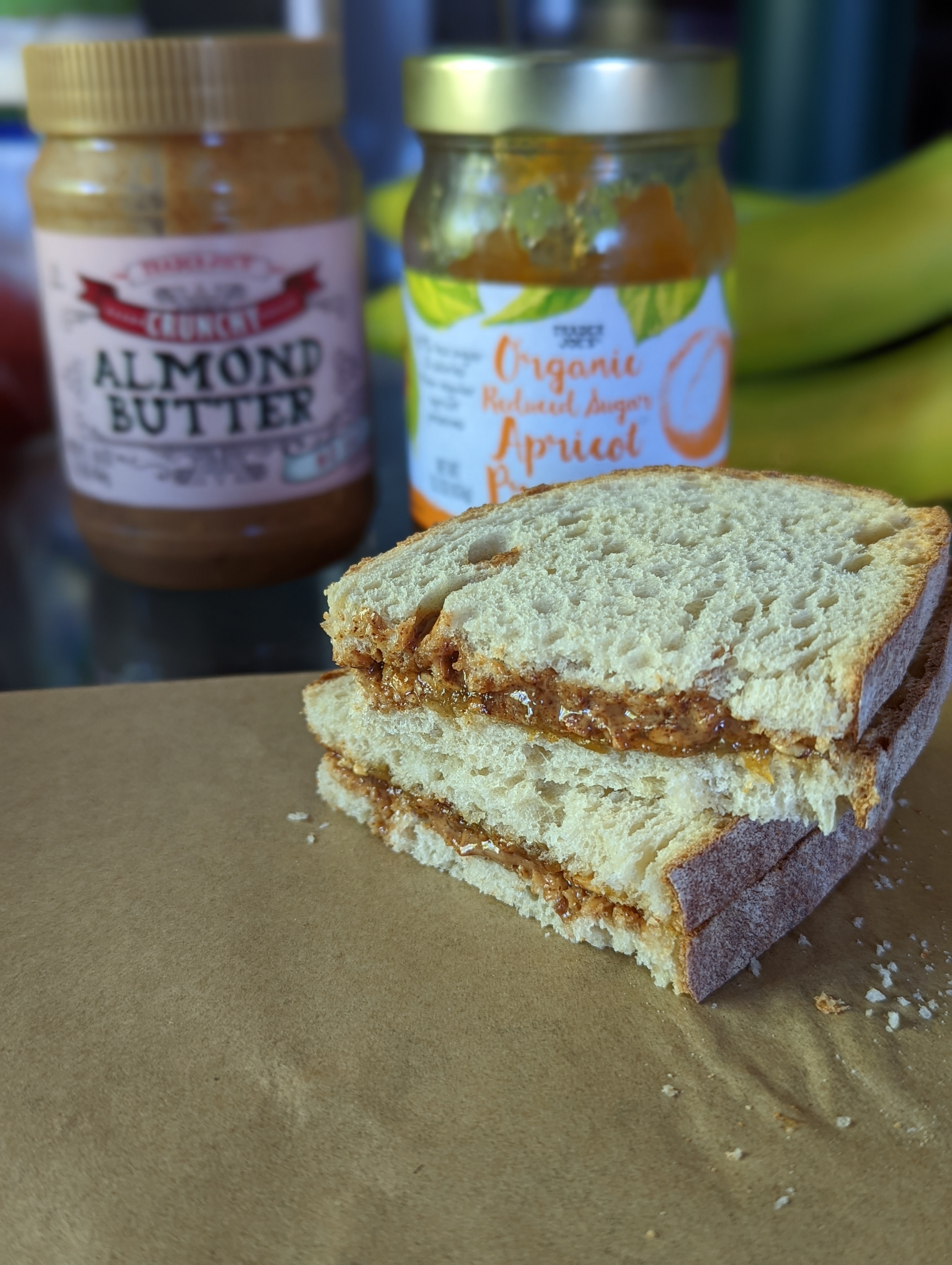 Almond Butter & Apricot Jam July 18, 2022September 26, 2022JenniferLeave a comment Quick breakfast to go! Share this: Click to share on X (Opens in new window) X Click to share on Facebook (Opens in new window) Facebook Like Loading...