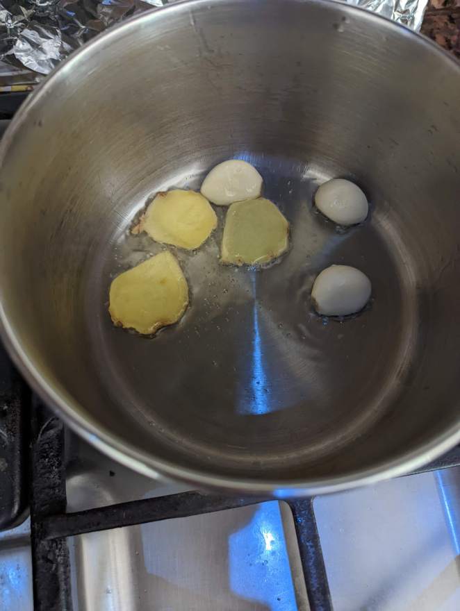 Tip: Make sure to fry the garlic and ginger in the oil until it releases their flavor into the oil.