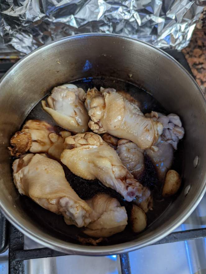 This is one of my favorite finger food but over rice. Why is it my favorite? Well, first of all, you should never waste sauce braised in chicken. Remove the excessive oil then you can use it for noodles or re-use it to cook eggs!