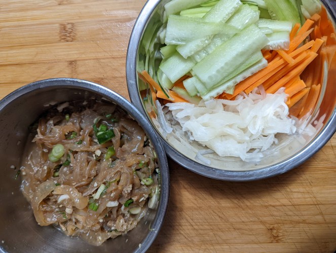 - Place the jellyfish and vegetables in the fridge for at least 30 minutes before serving. This will let the jellyfish marinate into the sauce.