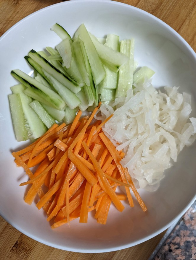 When attending a Chinese Banque, this dish is usually served as an appetizer and funny to say, I would fight everyone for it if they are not eating it. I love how it is served cold and the crunch and pickled vegetables is very appetizing.
