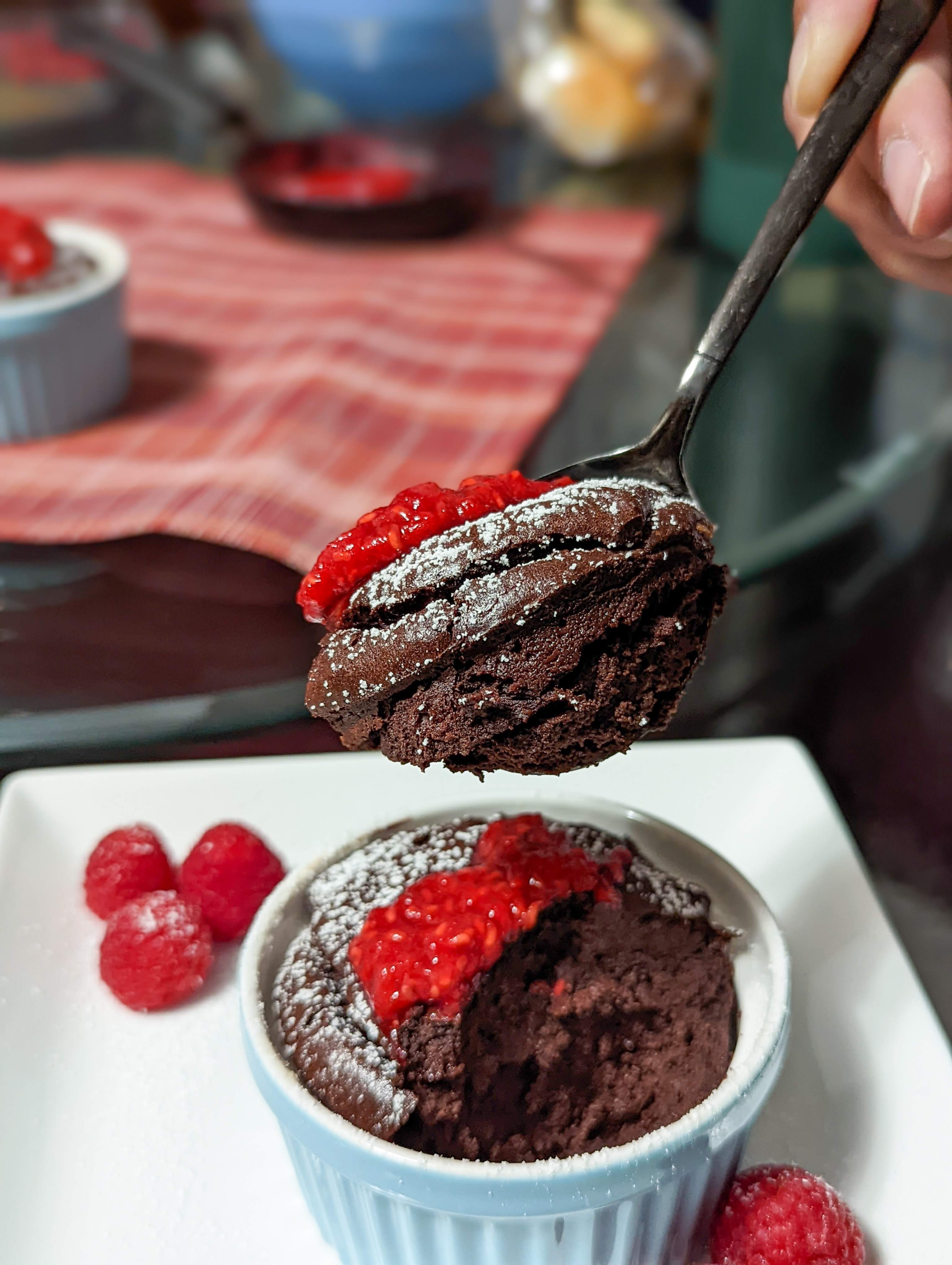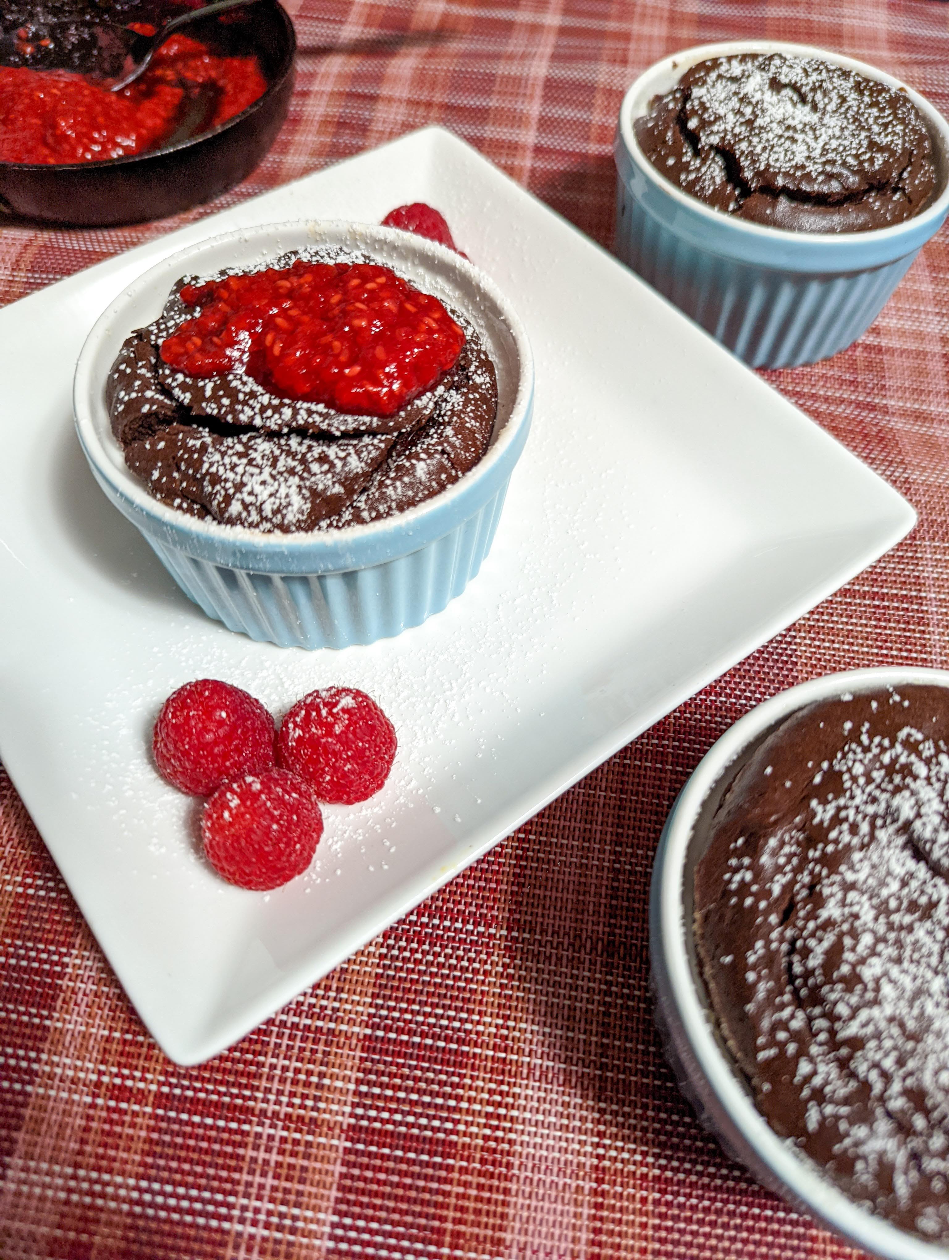 Transfer the mixture onto each ramekins. Bake in the oven for at least 10-13 mins. Top it off with fresh fruits, fruit jam, whip cream, ice cream or dusted power sugar and serve while it is hot!