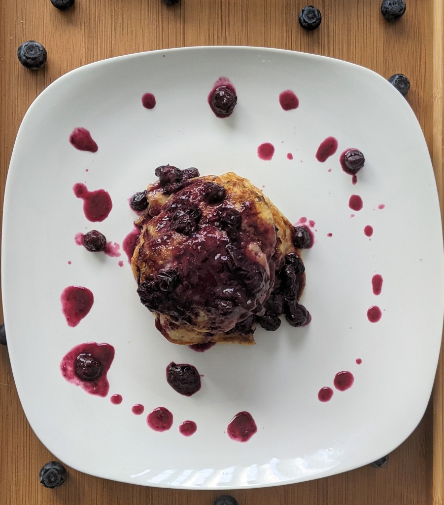 4. Top the blueberries on the pancakes and enjoy.