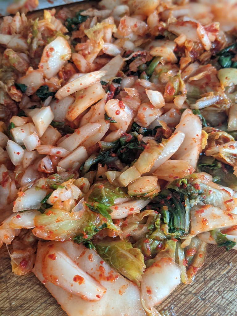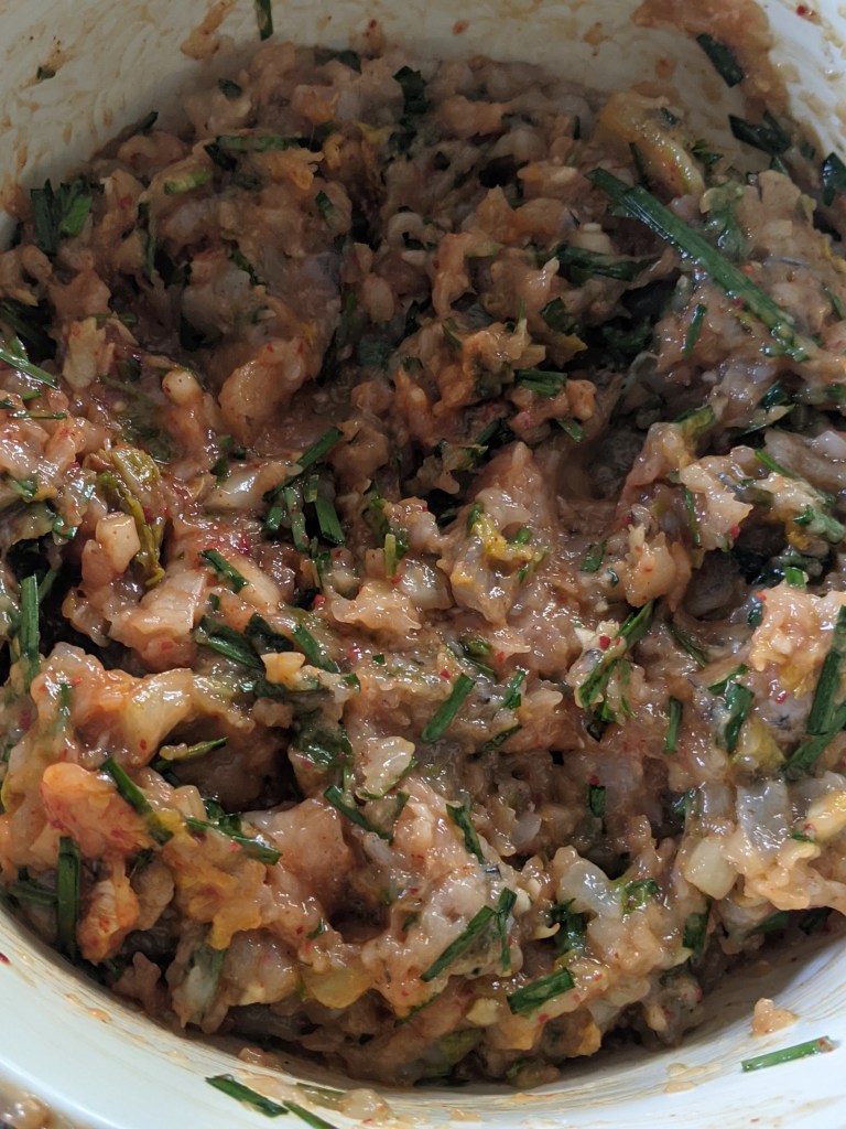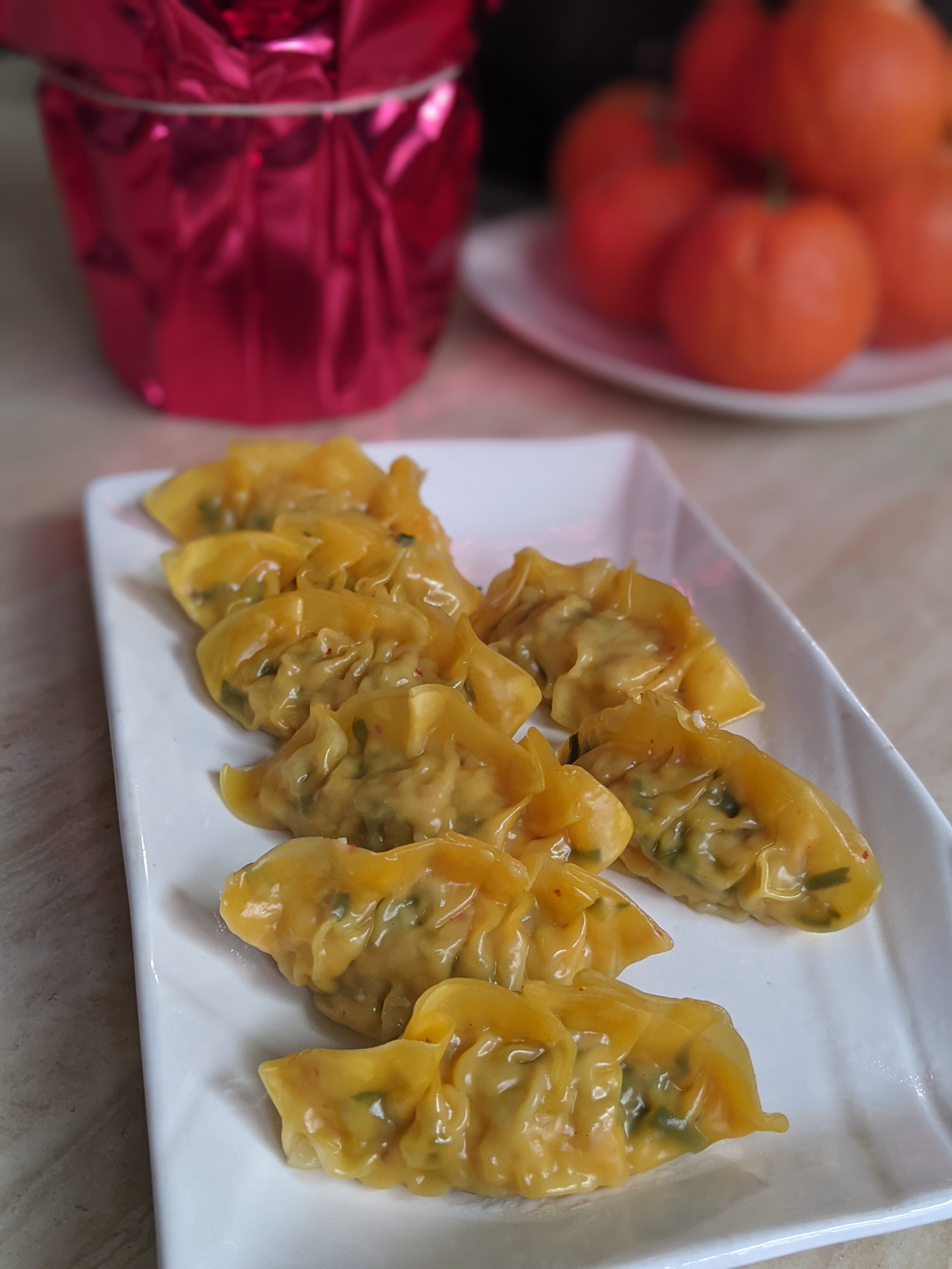 Our family tradition when it comes to Lantern Festival, we like to fold dumplings together. I thought I would continue the family tradition. We usually use pork instead of chicken, however, I wanted to change some ingredients and add in some spicy vegetables, which was kimchi. It gave it a nice kick of spice and right saltiness.