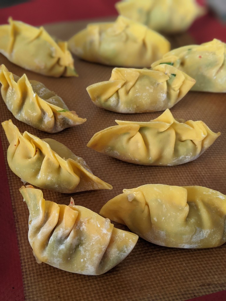 Note: If unable to finish all the dumplings at once, can prepare parchment paper with a plate so you can freeze the dumplings and pack them into a ziploc bag.