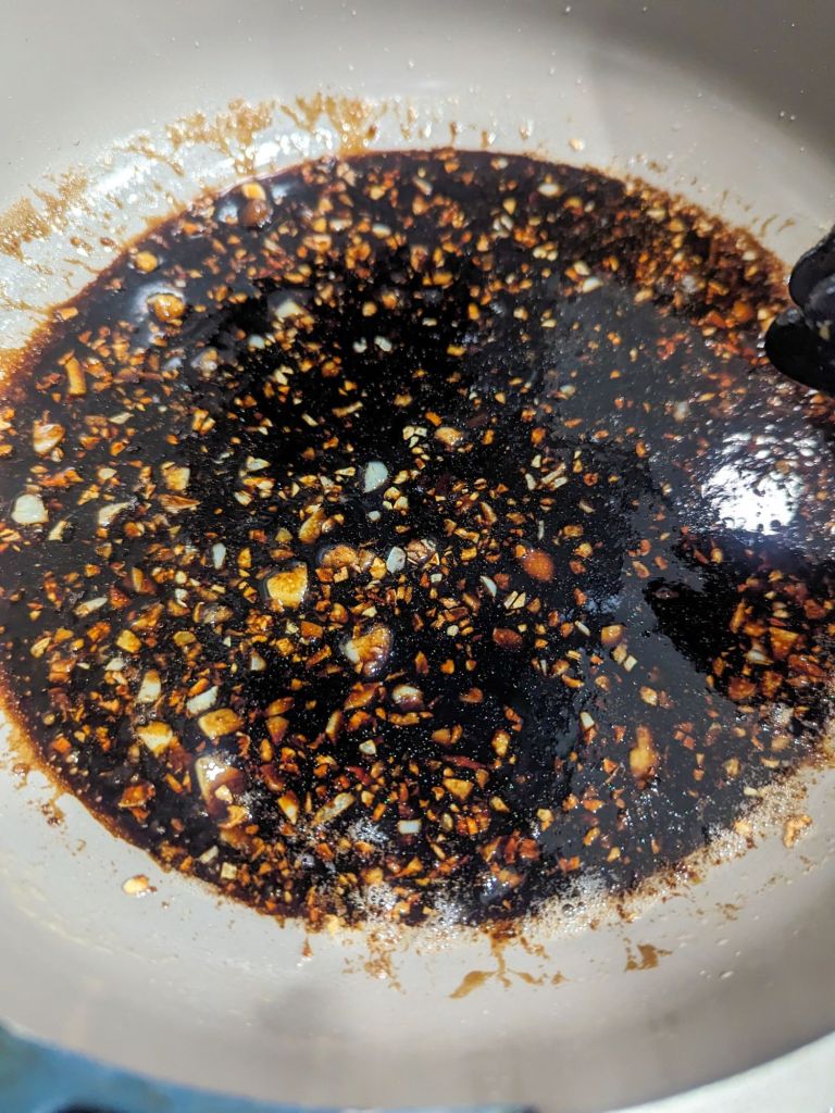 - Melt the butter in a large skillet over medium heat. Add the garlic and cook until fragrant – approximately 30-60 seconds. Add the prepared sauce to the garlic butter and mix well to combine.