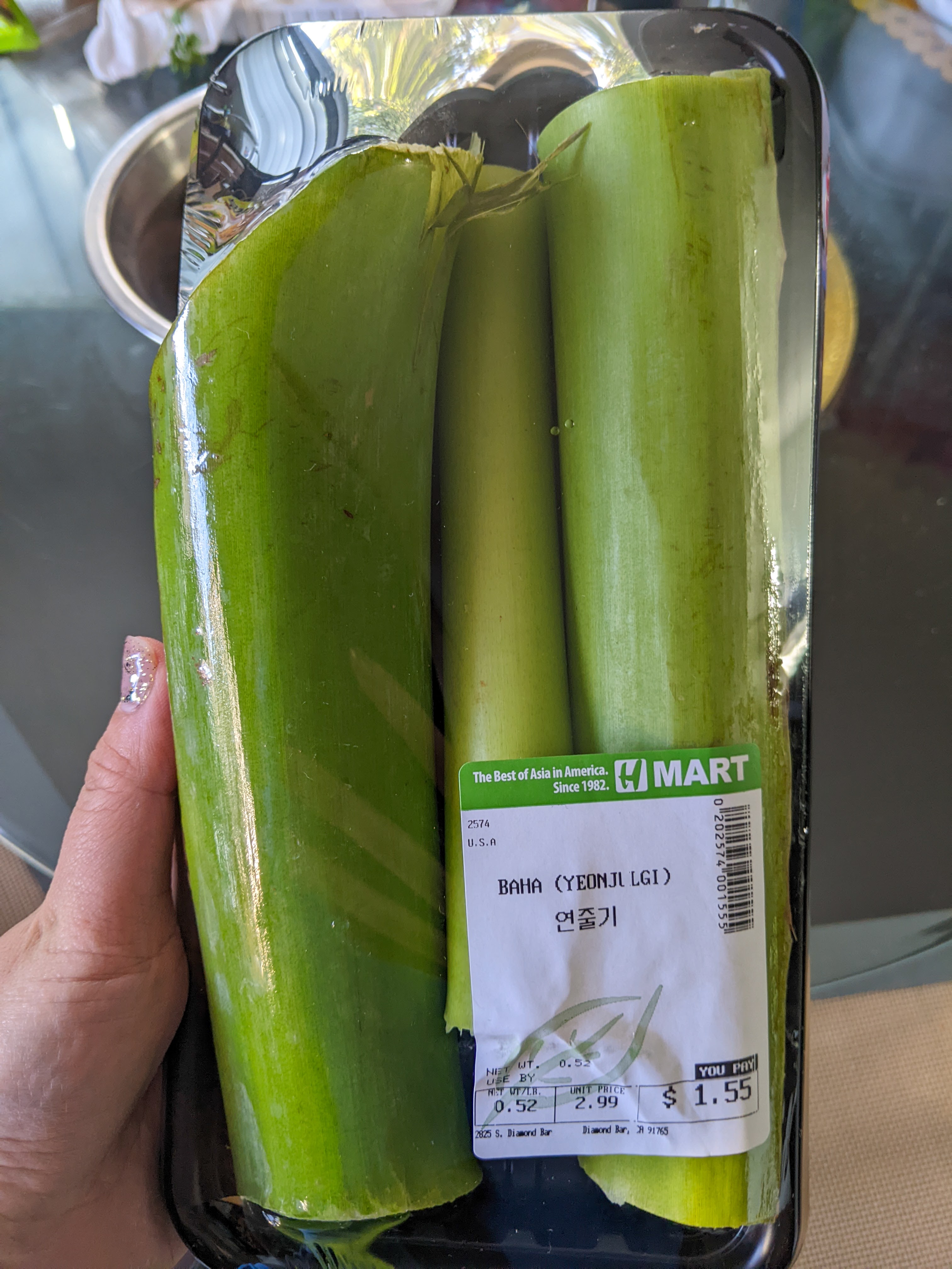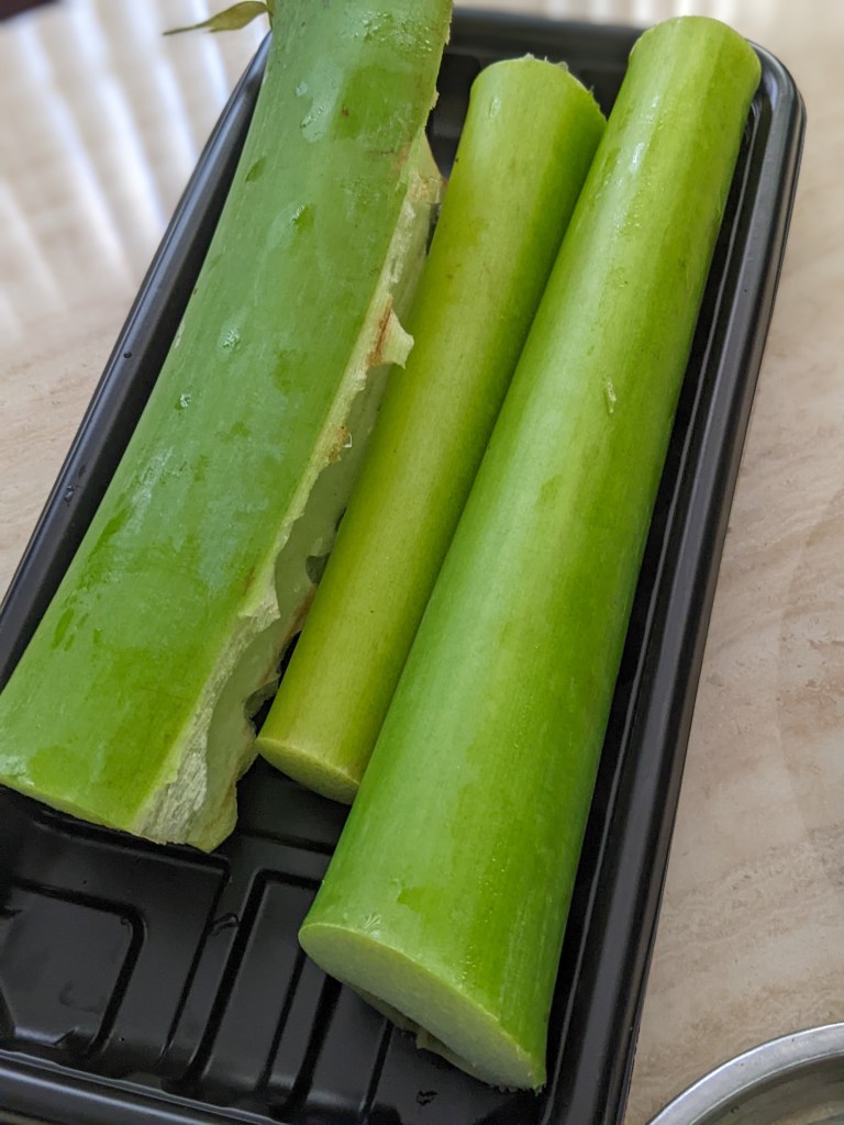 - 2 elephant ear stalks, peeled, chopped diagonally
