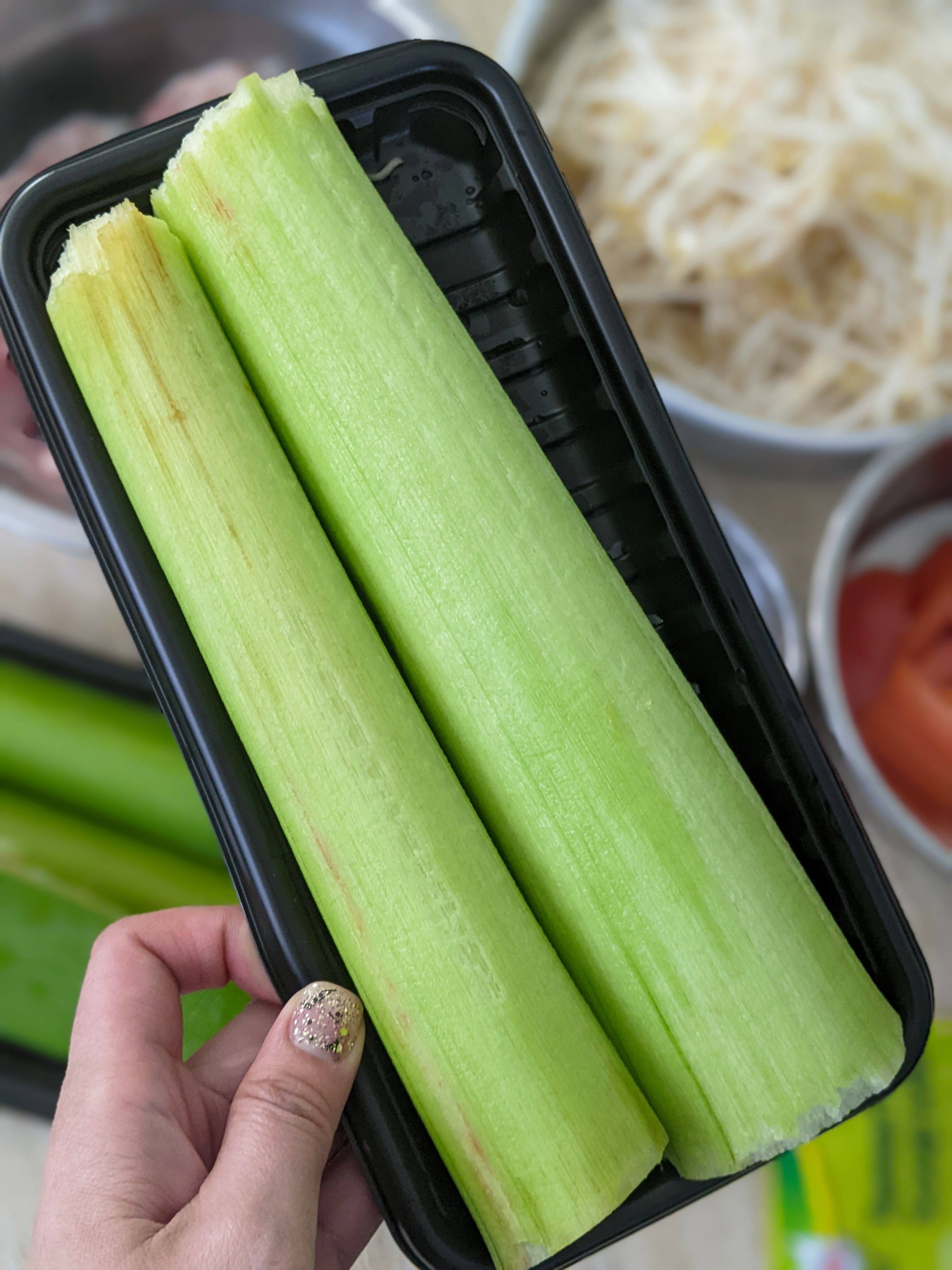 Next is to get your vegetables ready! You can find the elephant ear stems at your local grocery Asian store. Make sure to wash them thoroughly and peel the skin.