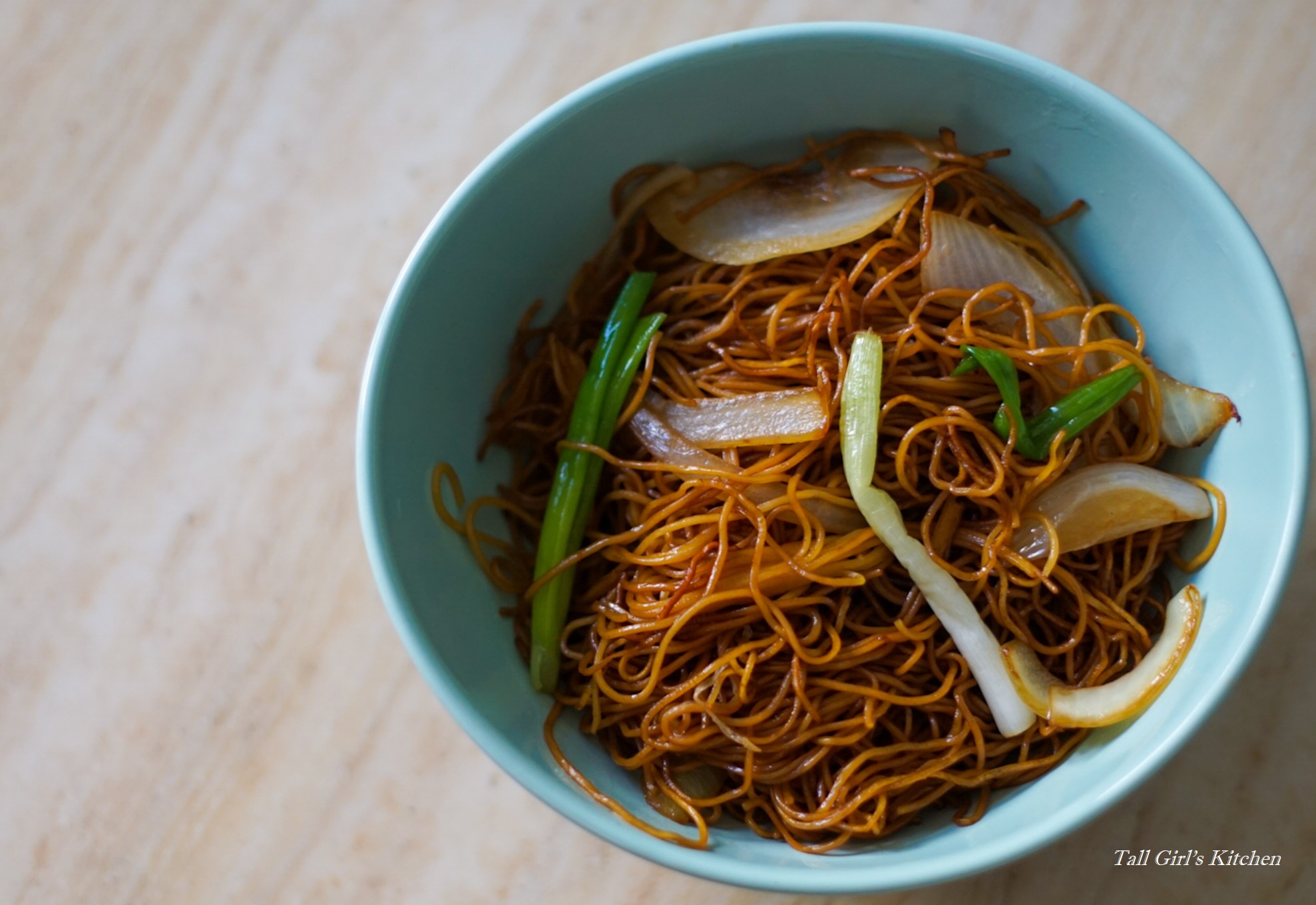 - Do not wash the wok. Keep the wok at high heat, adding 2 tablespoons of oil. When the wok turns slightly smoky, toss in the noodles. Spread the noodles evenly on the wok, so the noodles can crisp. After 15 seconds, flip the noodles and repeat.
