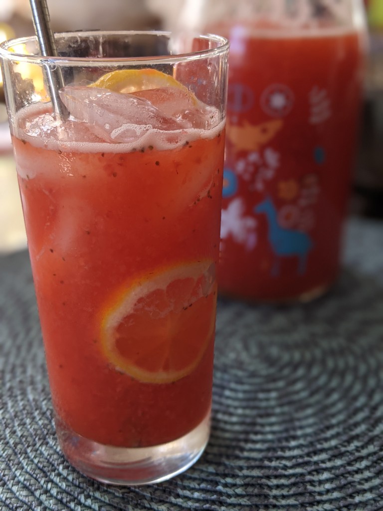 Pour the puree into a jar/jug, add in lemon juice, agave and water. Mix well. I personally like leaving it in the fridge for at least 30 minutes before serving over ice. It just tastes a lot better.